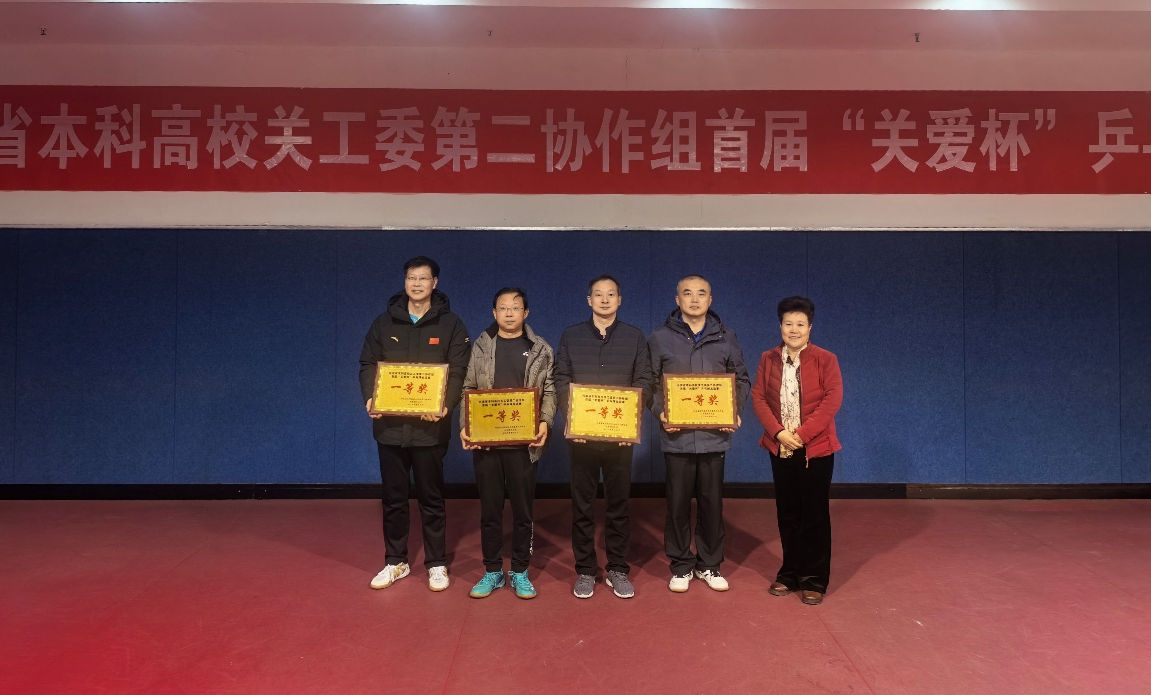 12月17日,河南省本科高校关工委第二协作组首届“关爱杯”乒乓球友谊赛在河南理工大学体育馆乒乓球馆举行,我校党委副书记、关工委主任牛瑞庆带队参赛,取得男女混合团体赛总分第一名好成绩。